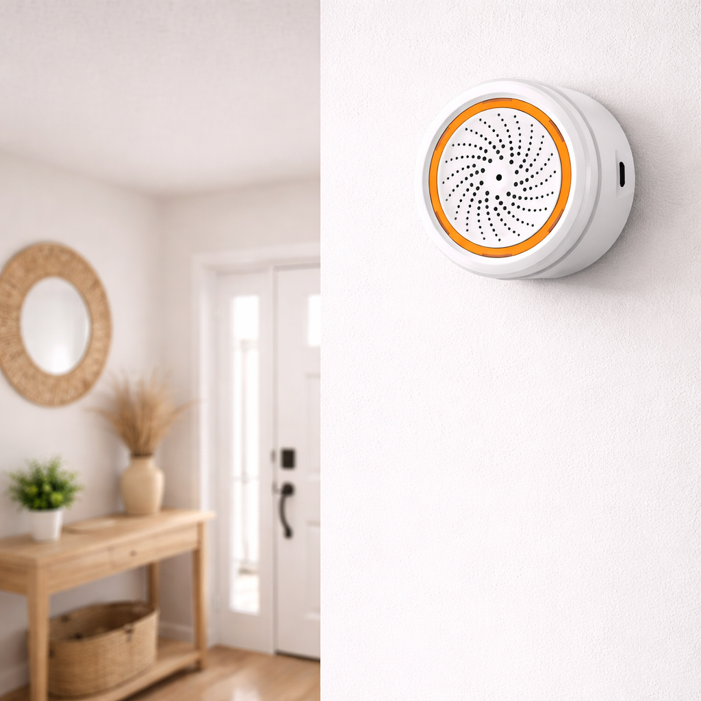 De Zigbee Smart Siren Alarm is een krachtige en veelzijdige slimme alarmsirene voor je woning of bedrijf. Deze sirene combineert een luid geluidsalarm, visuele LED-waarschuwing én een ingebouwde temperatuur- en luchtvochtigheidssensor in één compact apparaat. Ideaal als centrale alarmmelder binnen een Tuya Zigbee smart home.